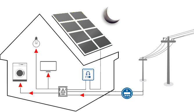 Sem produção solar, você utiliza a energia da rede normalmente. Porém, os créditos gerados durante o dia compensam esse consumo.